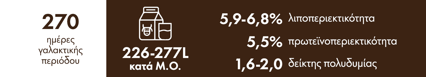 Τέλος, οι ξενικής προέλευσης φυλές χαρακτηρίζονται από μεγαλύτερη γαλακτική περίοδο από τις αντίστοιχες ελληνικές , γεγονός που επιτρέπει τη διάθεση ποιοτικού πρόβειου γάλακτος για μεγαλύτερη χρονική διάρκεια.
